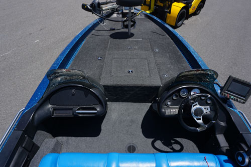 エレキはミンコタウルトレックスでオフセット仕様。魚探はフロント、リアともに付属し、リアはGPS内蔵プロッター魚探PS-8が付いております。